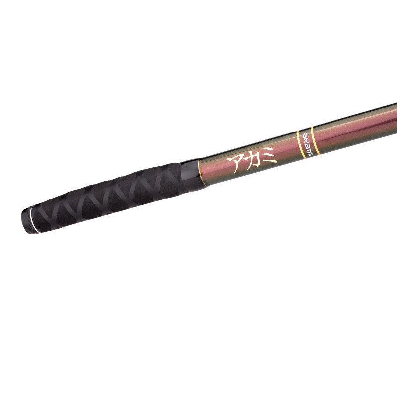 Novedad exclusiva de Akami Japan, fabricada con carbono Toray 45TON en triple pared, con tejidos trenzados en espiral para conseguir una estructura más ligera, fina y resistente, capaz de transmitir unas sensaciones únicas en acción de pesca. Con una puntera tubular maciza híbrida de última generación en acción 33 号 Rápida, capaz de transmitir la mínima picada y conseguir lanzamientos precisos. Equipada con anillas FUJI SIC TITANIUM RV y portacarretes FUJI DPS. Sistema de alineación de tramos, potencia, ligereza y sensibilidad, todo ello combinado con una estética inigualable gracias a su pintura japonesa tornasol. En definitiva, una caña de edición limitada desarrollada para los pescadores más exigentes.